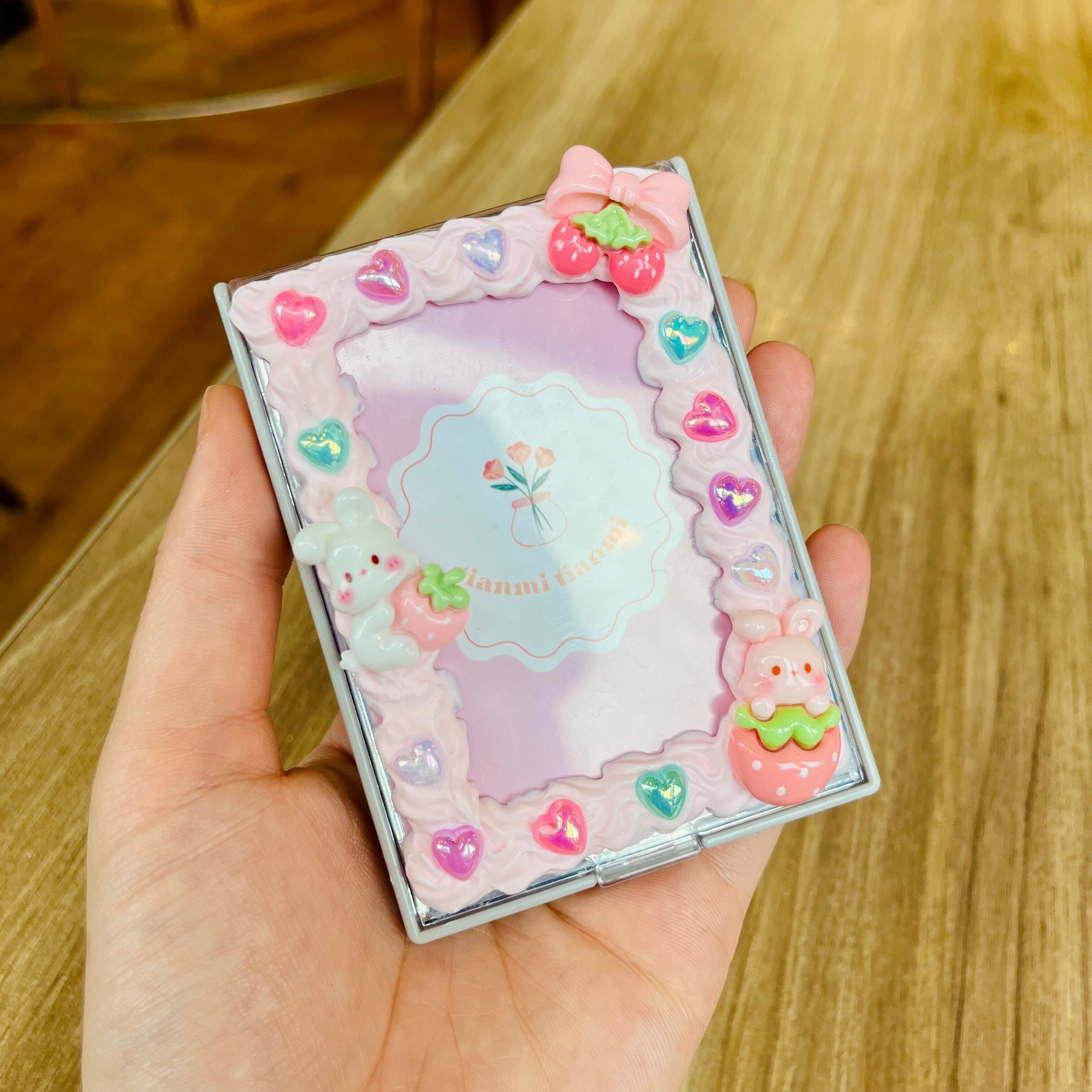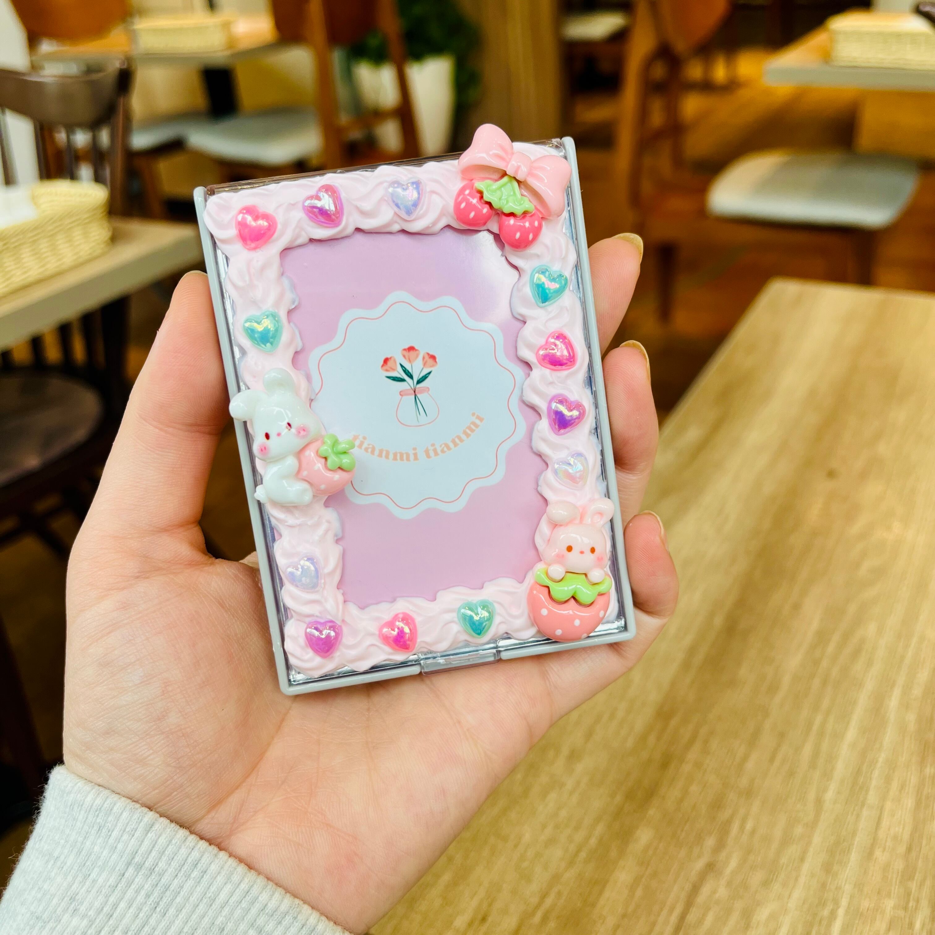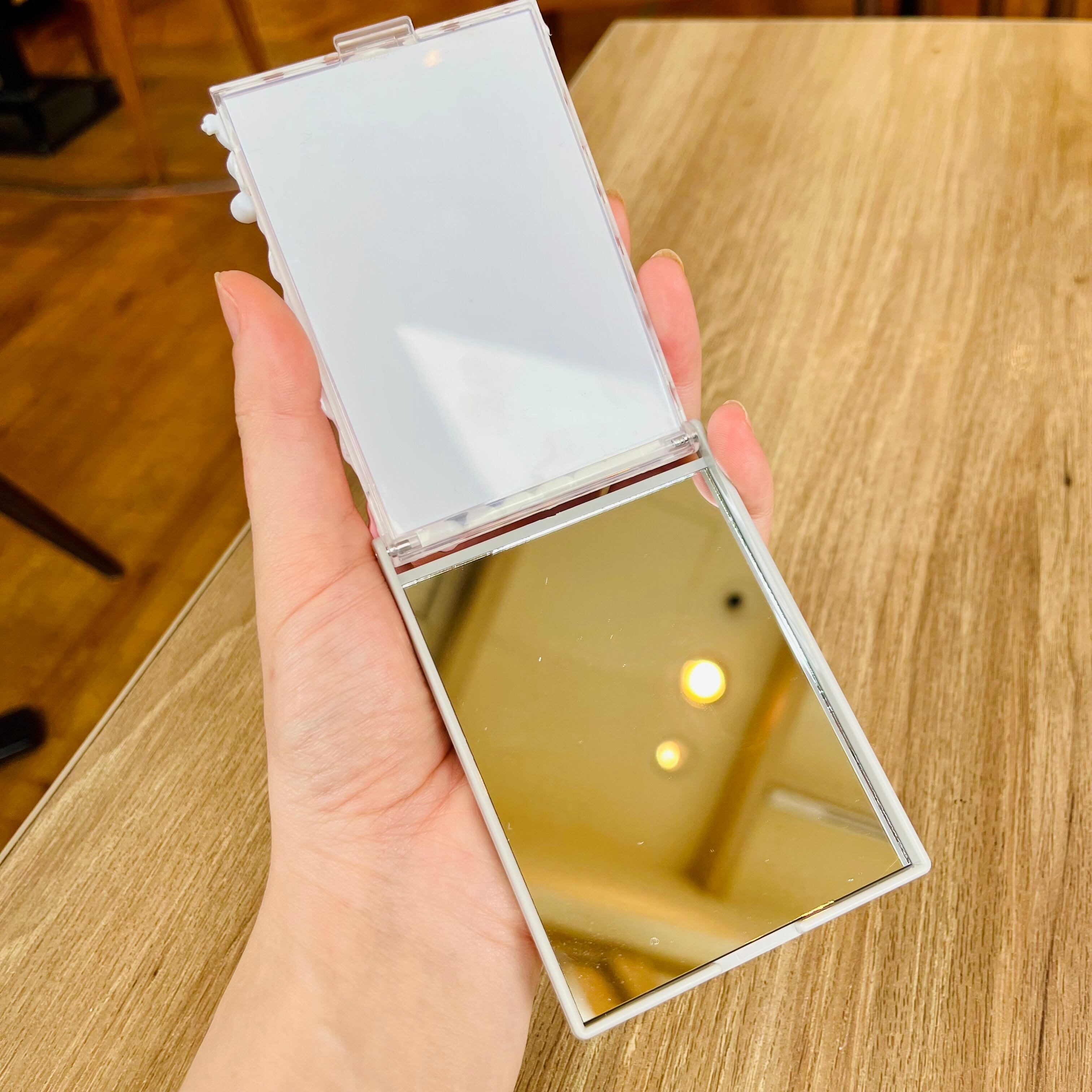 お好きなトレカを蓋部分に封入できる携帯ミラー。