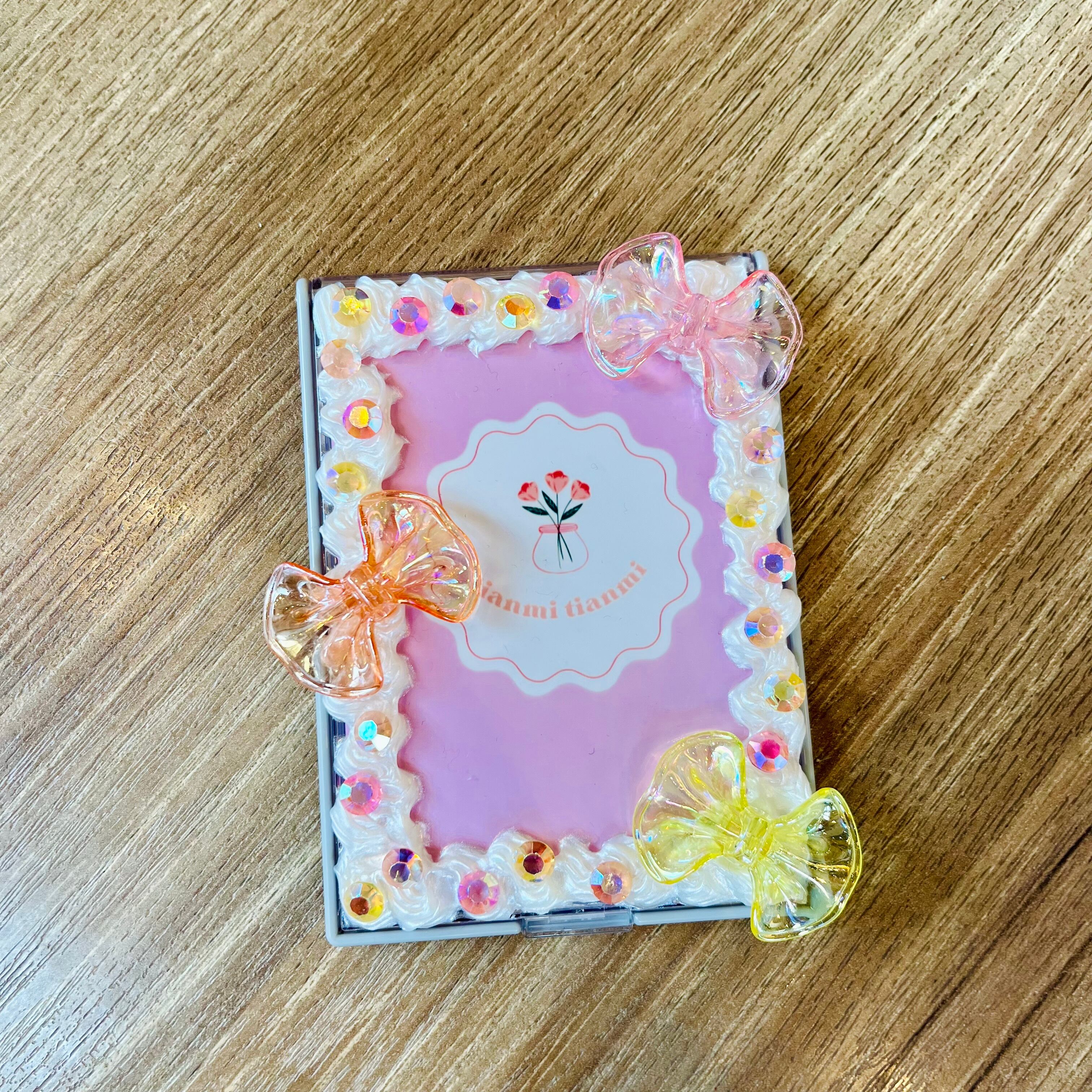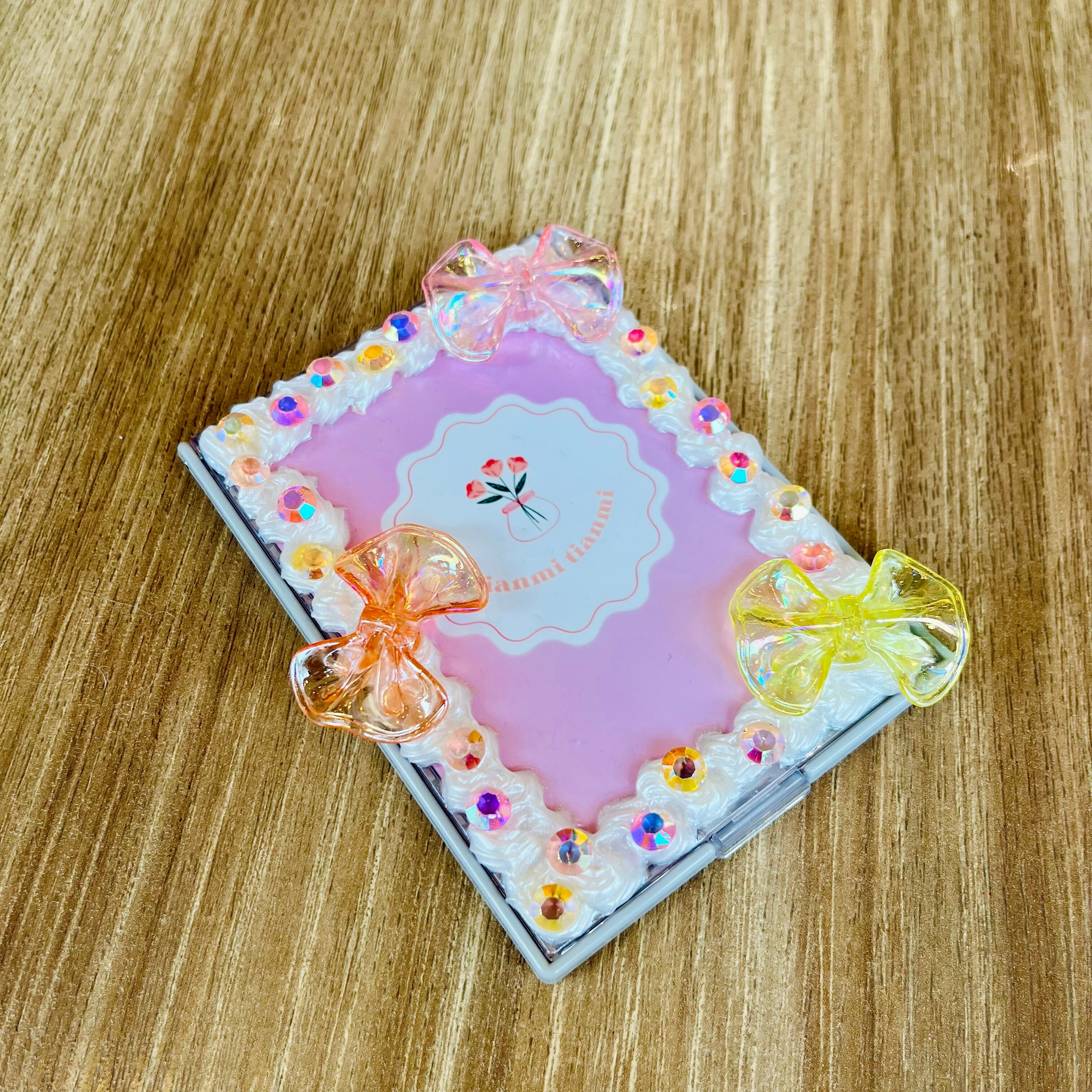 お好きなトレカを蓋部分に封入できる携帯ミラー。