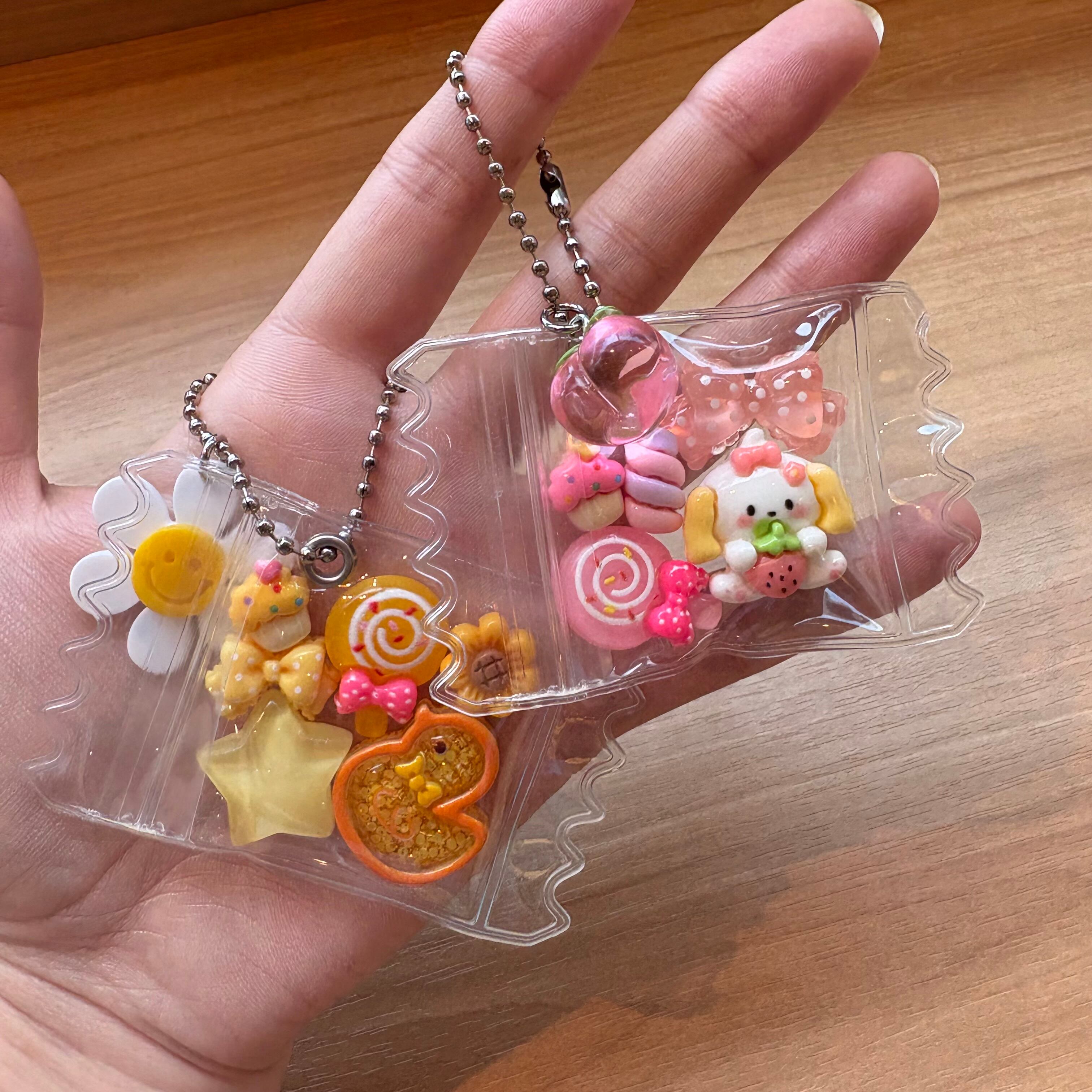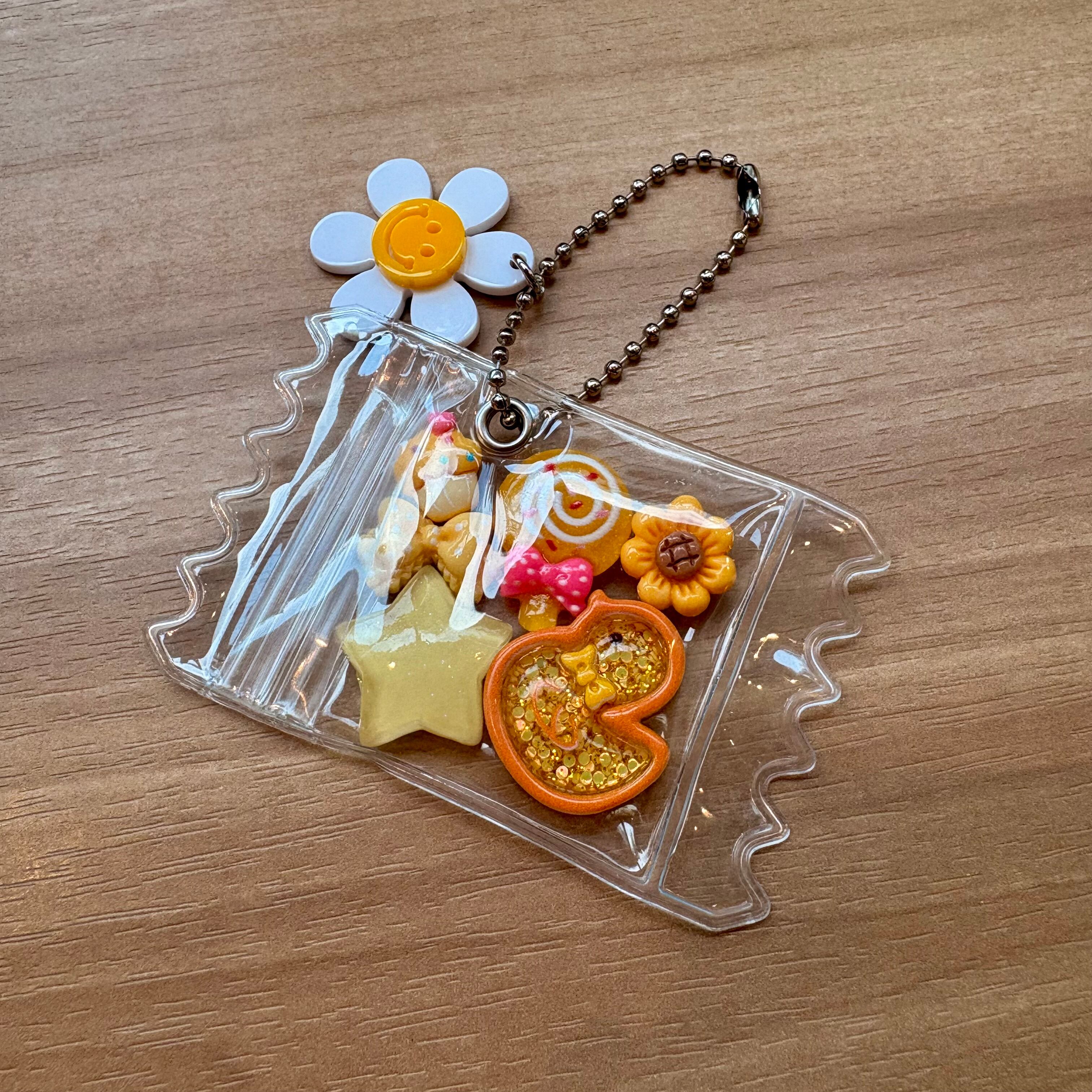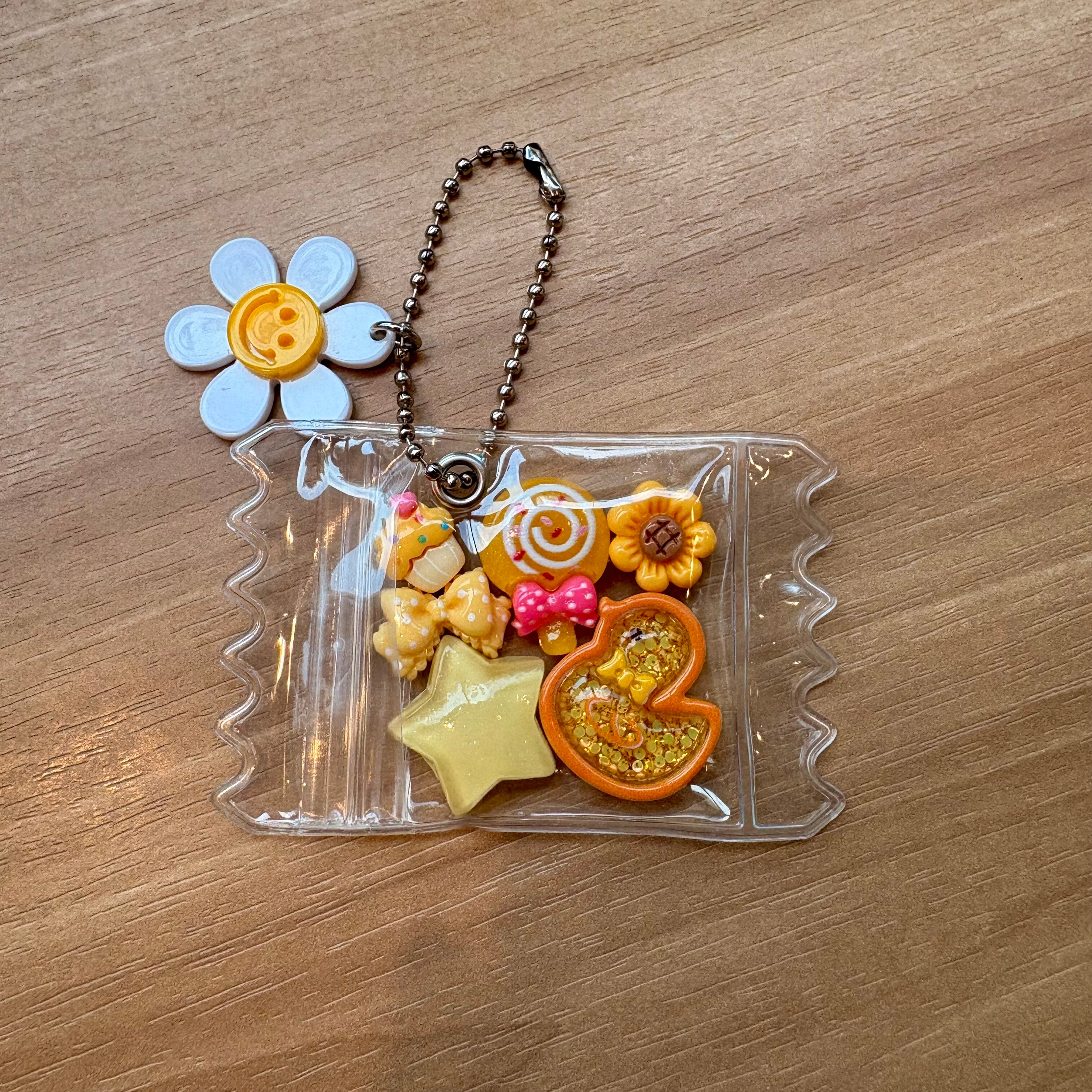 かわいらしいデザインのお菓子パックキーホルダー。