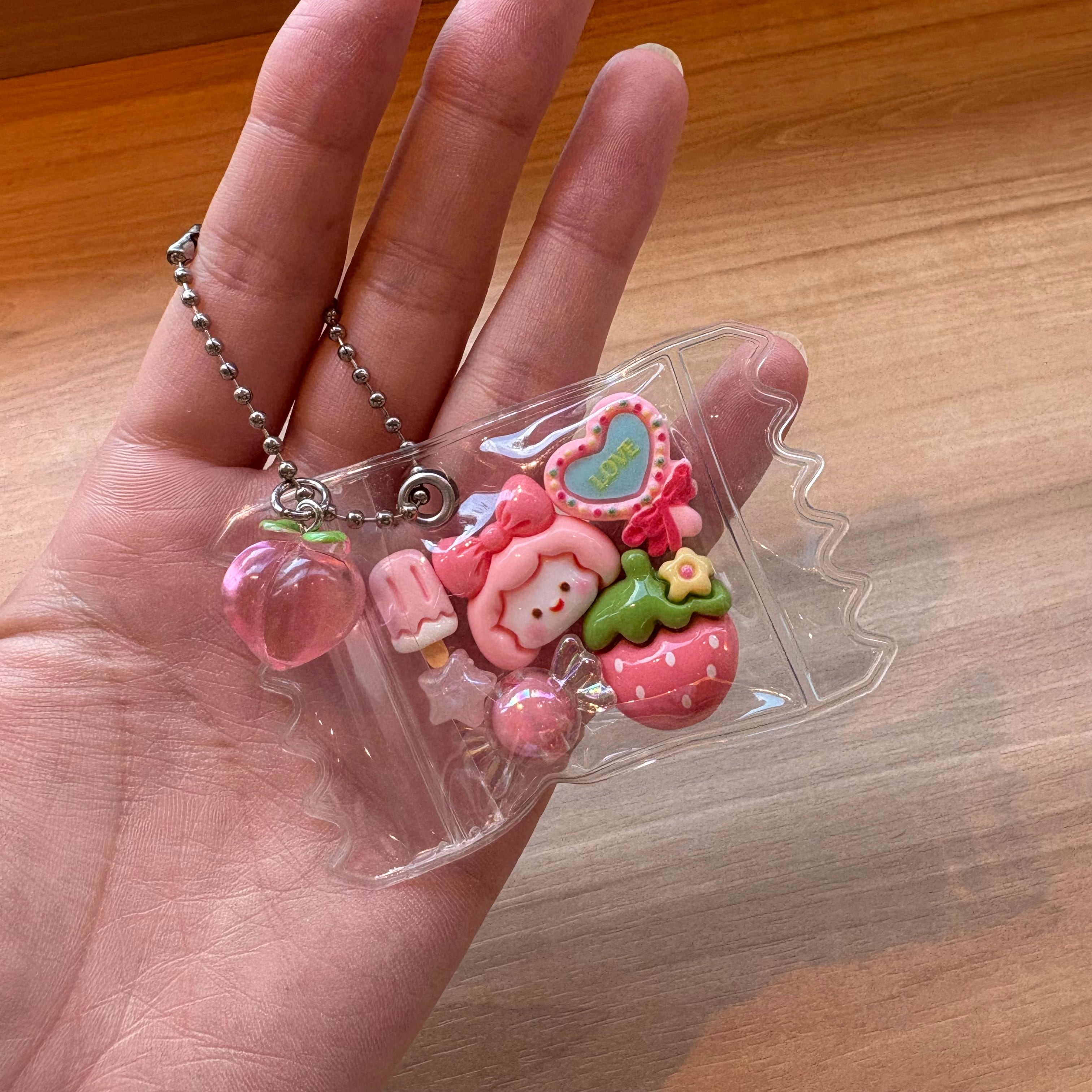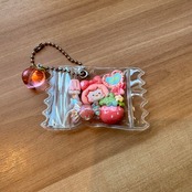 かわいらしいデザインのお菓子パックキーホルダー。